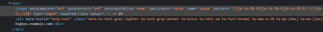 <input au au au spellcheck="false" name="value" pattern="^(([a-zA-Z0-9]|[a-zA-Z0-9][a-zA-Z0-9(\-)]*[a-zA-Z0-9])\.)*([A-Za-z0-9]|[A-Za-z0-9][A-Za-z0-9\-]*[A-Za-z0-9](\.?))$" type="input" required="" class="" value="."/>şeklinde görünen kısmı sağ tıklayarak HTML olarak düzenle seçeneğini seçiyoruz ve